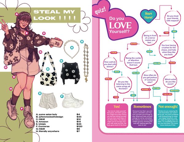 Page layout and spread design is currently one of my design interests! I incorporate fun color palettes that feel cohesive throughout the body of work to make them fun to look at and read. All works were written, illustrated, photographed, and designed by me unless stated otherwise.
